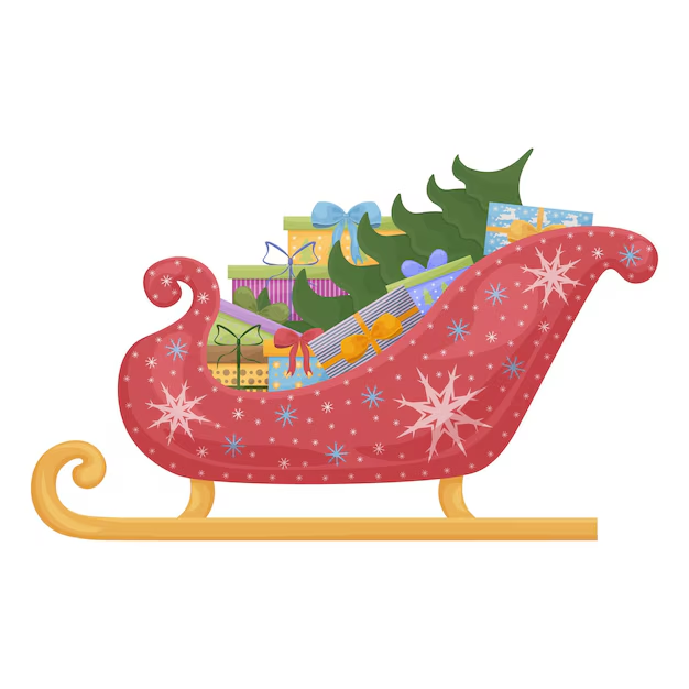 - Нарисуйте корпус саней с изогнутыми полозьями.