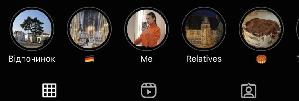 If you are developing your brand, covers can be made from your photos as well. They can be in the usual version, or they can be blacked out with Stories-themed text. There are many variations, all in the hands of your imagination.