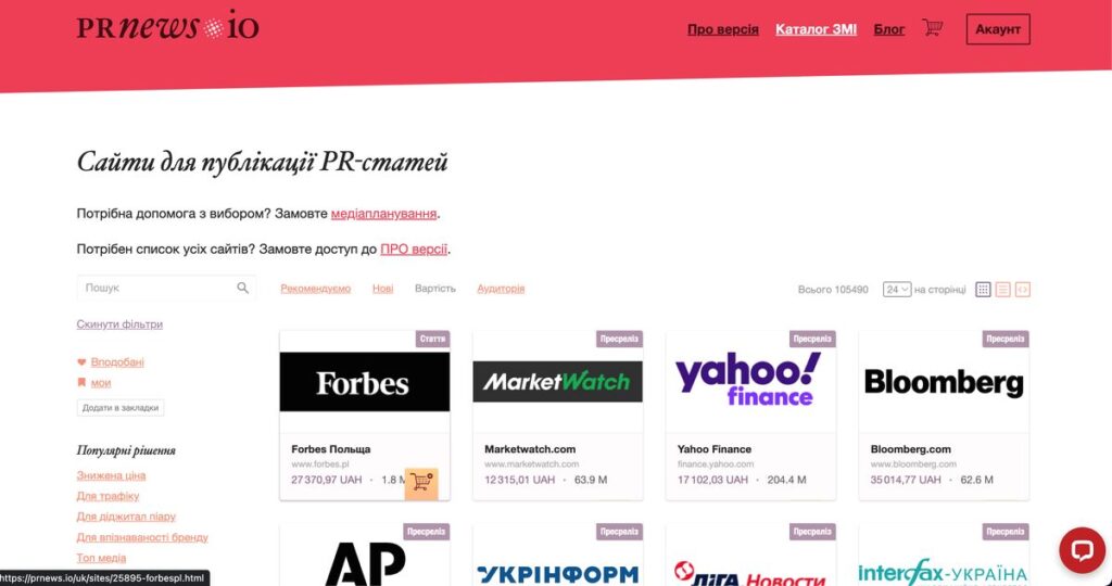 Сайтhttps://prnews.io/ru/sites