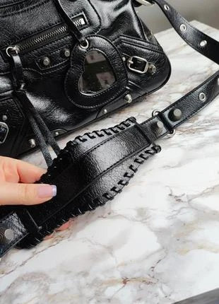 Каждая оригинальная сумка Баленсиага оснащена внутренней кожаной биркой и уникальным идентификатором. Внутри сумки вы найдете кожаную бирку с тиснением логотипа. Она обычно крепится к внутреннему шву или находится в кармане. Буквы всегда имеют определенный шрифт, который сложно повторить.