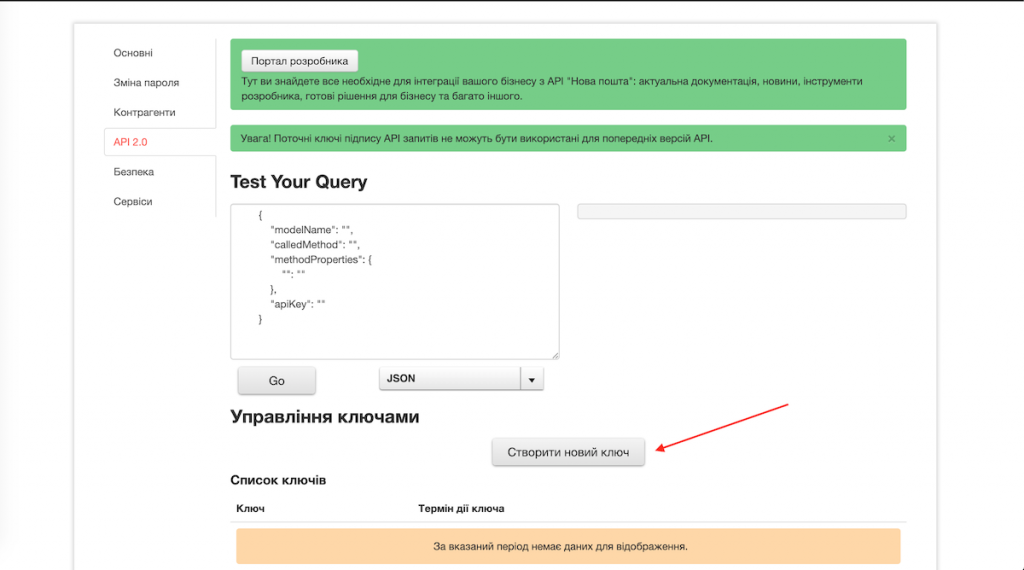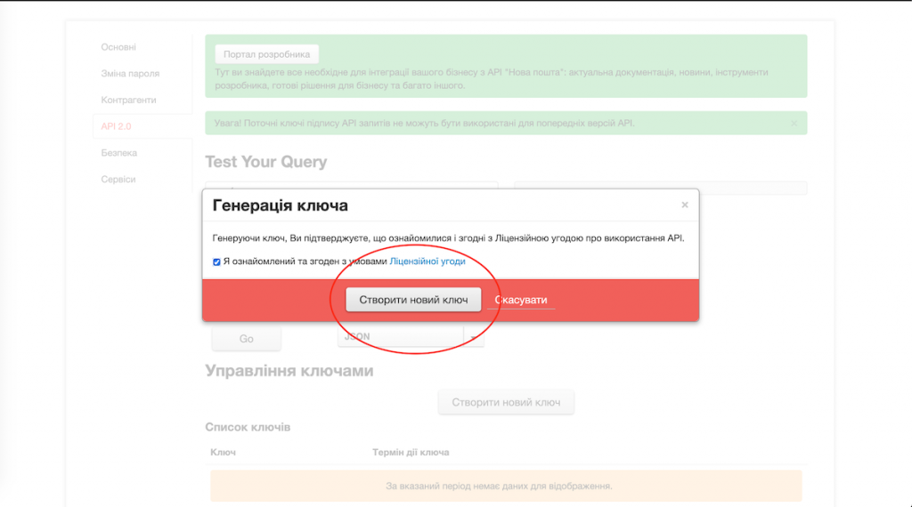 А тут вам нужно проскролить вниз страницы и найти кнопку «Створити новий ключ»: