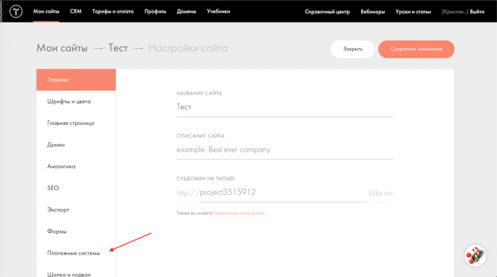 Найдите в левой боковой панеле вкладку «Платежные системы» и кликайте: