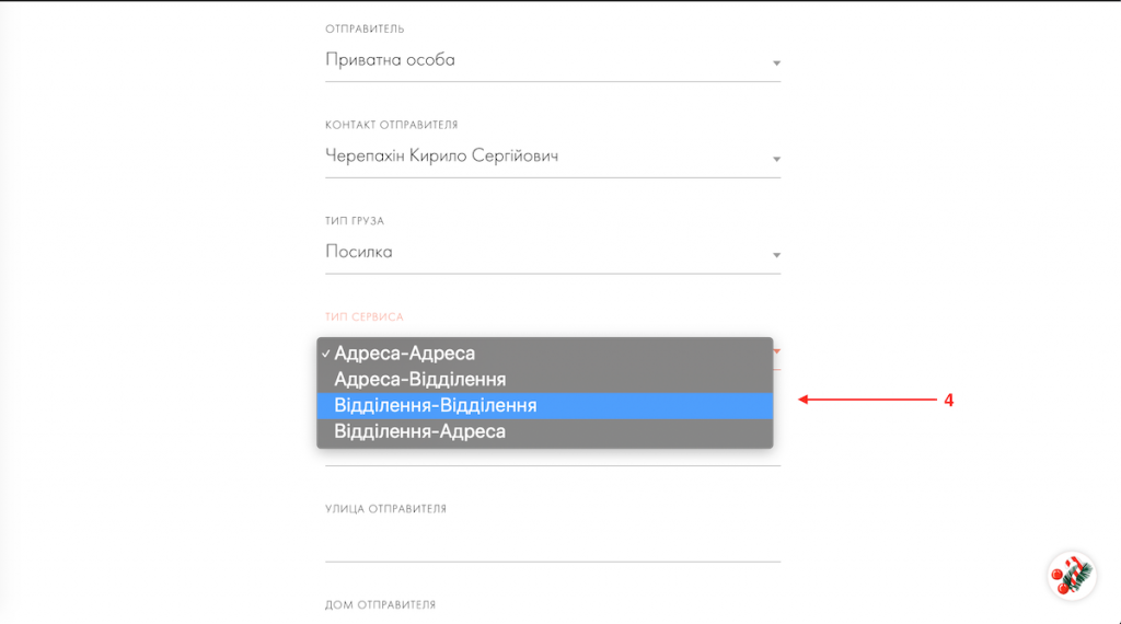 1. Тип сервиса. Здесь вы выбираете метод доставки. Самый востребованный метод: Отделение-отделение. Выбираем его для примера: