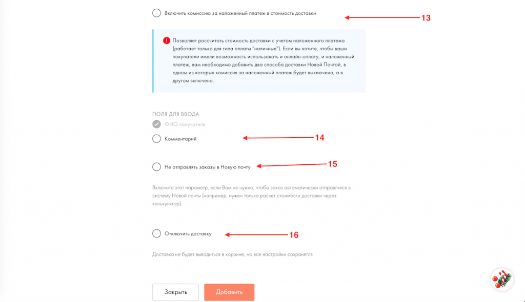 1. Включить комиссию за наложенный платеж в стоимость доставки. Если вы отправляете товары наложенным платежем, то в этом поле вы можете поставить галочку и тем самым в общую стоимость доставки включится наложенный платеж.