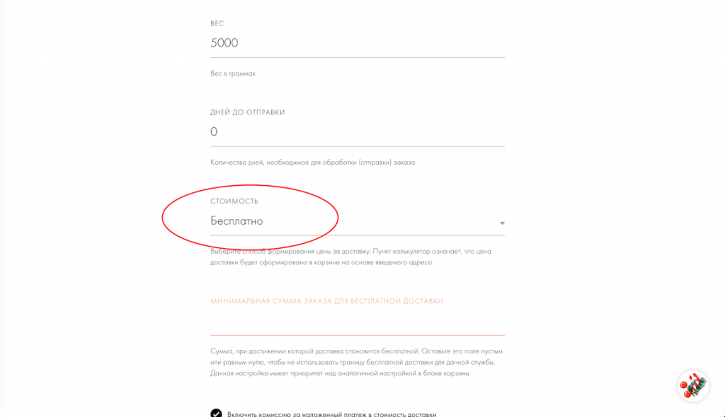 3. Минимальная стоимость доставки для бесплатной доставки. Поставь здесь сумму, если у вас предусмотрены такие варианты лояльности к клиенту.