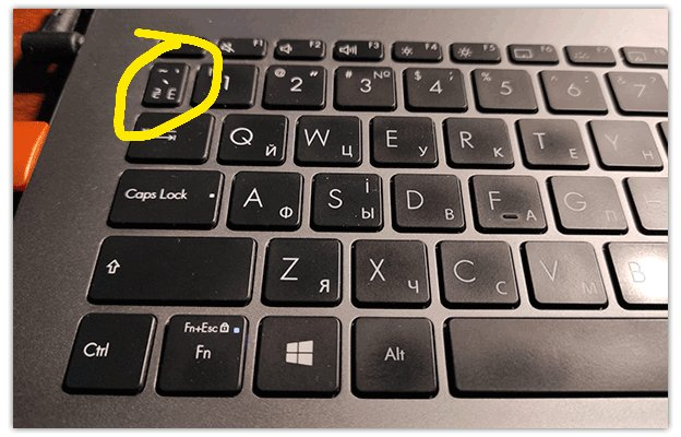 - Обычно знак ~ находится на клавише в левом верхнем углу клавиатуры, рядом с цифрой 1 и под клавишей ESC.