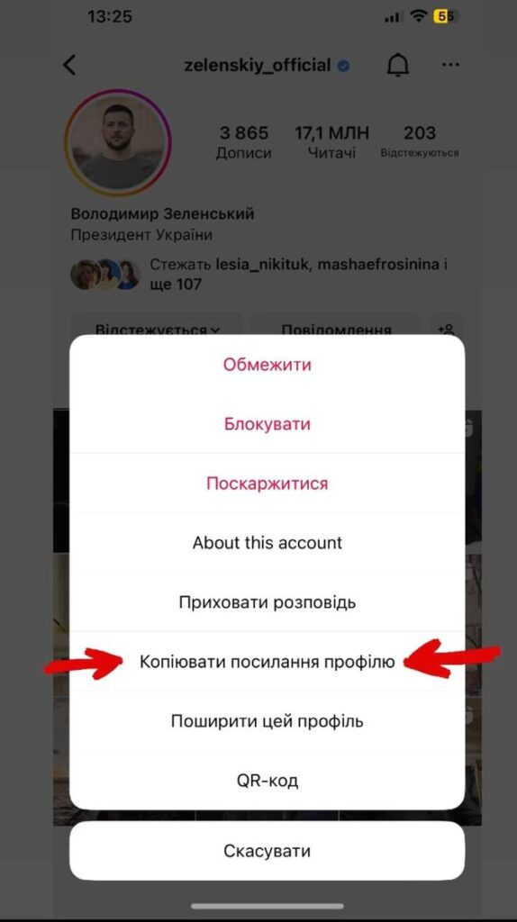 Скопировать ссылку на чужой аккаунт в Инстаграм
