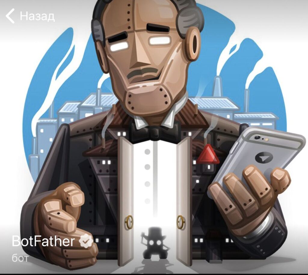 - Для этого найдите в Телеграме бота под названием @BotFather. Обязательно проследите за синей галочкой (верификация).