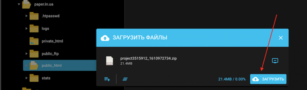 Теперь вам нужно загрузить архив сайта, который вы получили из Тильды: