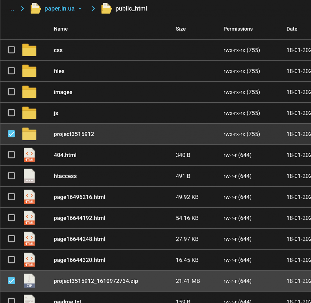 Кликните по этой папке и вам откроются все ваши домены. Выберите нужный (в моем случае, это paper.in.ua) и кликните по нему. Затем кликайте в папку «public_html»: