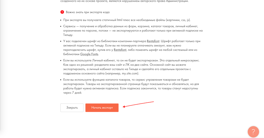 Хочу заметить сразу, что экспортировать код сайта из конструктора вы сможете только оплатив тариф Business.