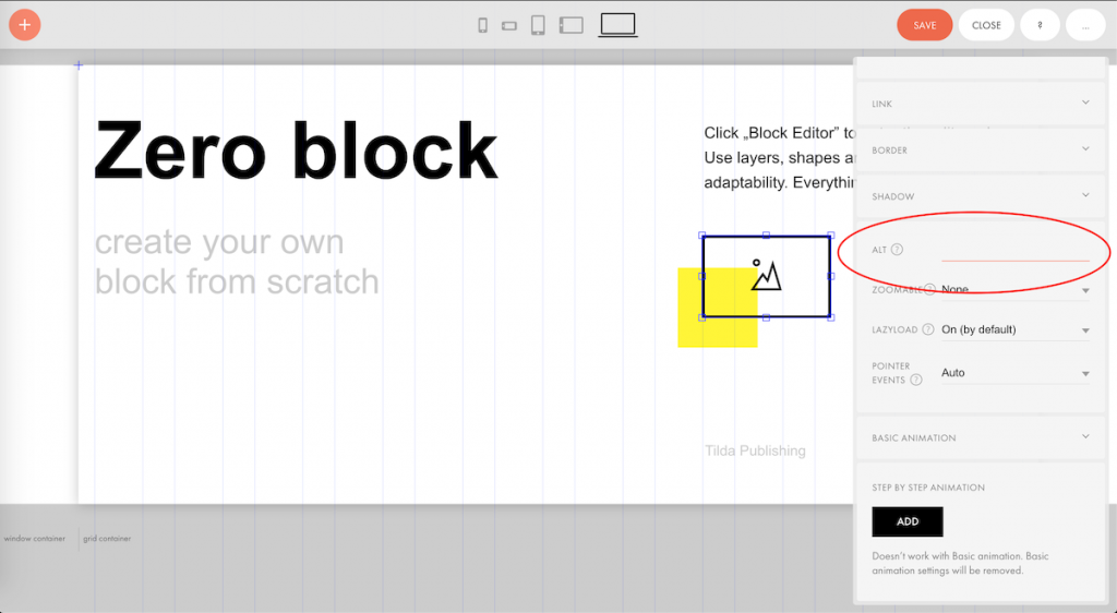 Свойство ALT для изображений в Тильде