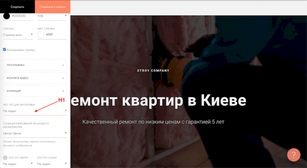 Выбираем нужный нам заголовок H1 и сохраняем. После этого, в моем случае, текст «Ремонт квартир в Киеве» станет заголовком H1.