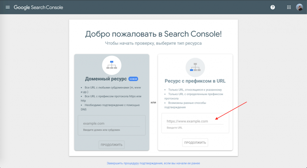 Введите адрес сайта и нажмите кнопку Продолжить: