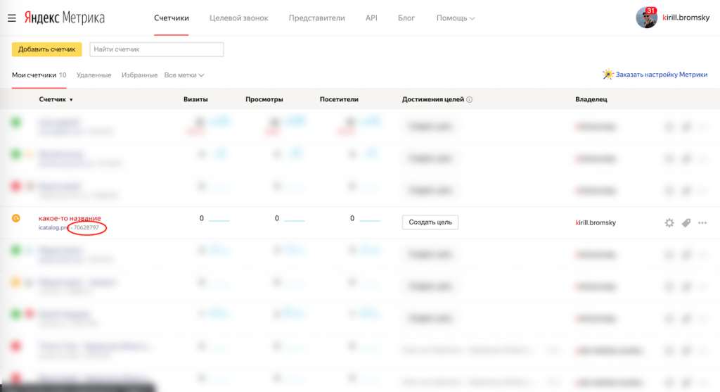 На новой странице вы увидите свой новый счетчик в списке всех счетчиков (или только одного). Вам нужно скопировать его идентификатор: