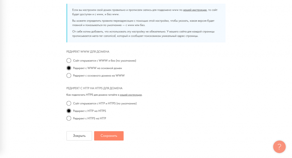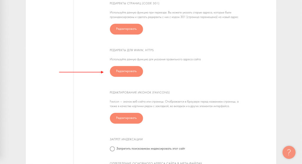 Далей, найдите раздел «РЕДИРЕКТЫ ДЛЯ WWW, HTTPS» и перейдите в него: