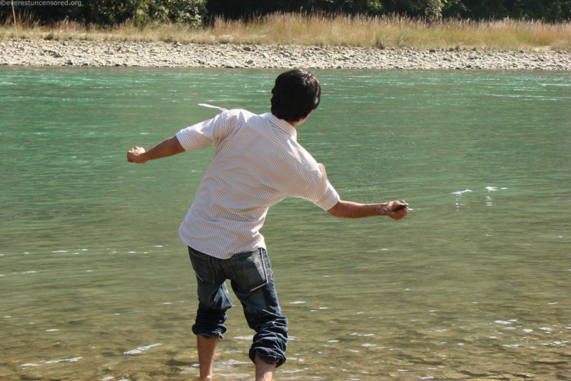 - Вода в річці тече під дією сили тяжіння, рухаючись по кривій траєкторії з мінливою швидкістю.