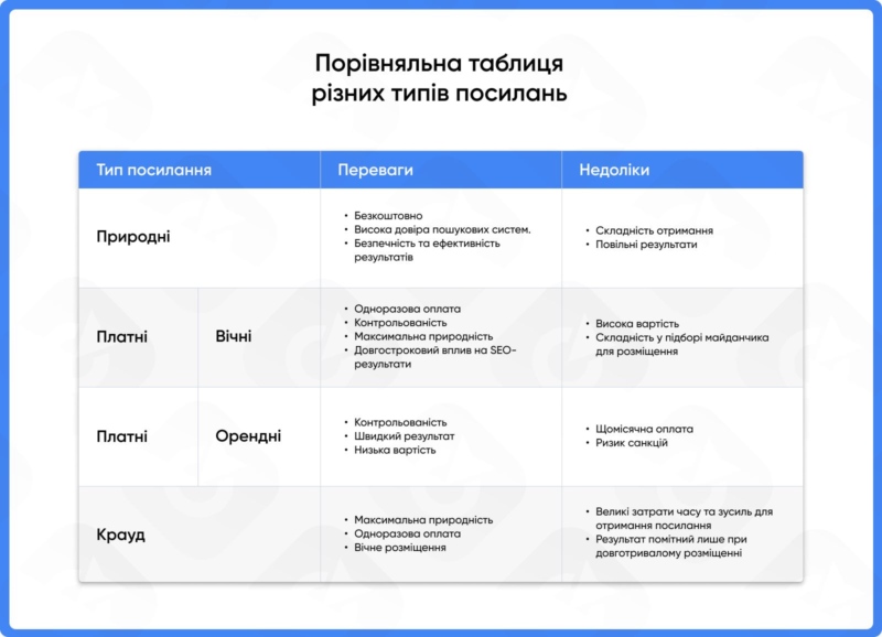 Використання різних типів посилань у вашій SEO-стратегії може значно підвищити ефективність просування сайту та сприяти у досягненні інших SEO-цілей.