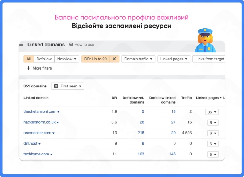 Ще один важливий пункт — перевірка якості посилань. Токсичні лінки (ті, що порушують правила Google) негативно впливають на ваш рейтинг у пошукових системах. Щоб виявити потенційно небезпечні спам-посилання, оцінюйте наступні критерії:
