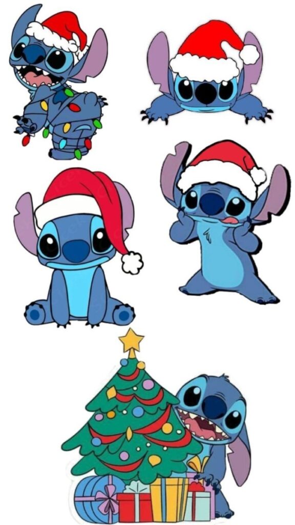 Можна також намалювати Стіча біля ялинки або з гірляндою. Такий малюнок чудово прикрасить святкову листівку.