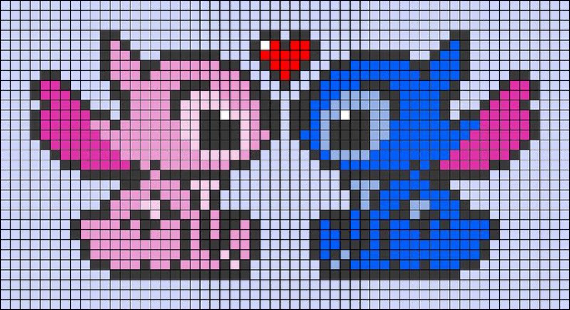 Існує версія персонажа – Енджел, вона має рожевий колір шкіри. Якщо цікаво, як намалювати рожевого Стіча, – змініть базовий синій колір на ніжно-рожевий. Решта форми залишається схожою: ті ж вушка, очі та лапки. Це ідеальний варіант для листівки дівчинці чи оформлення щоденника.