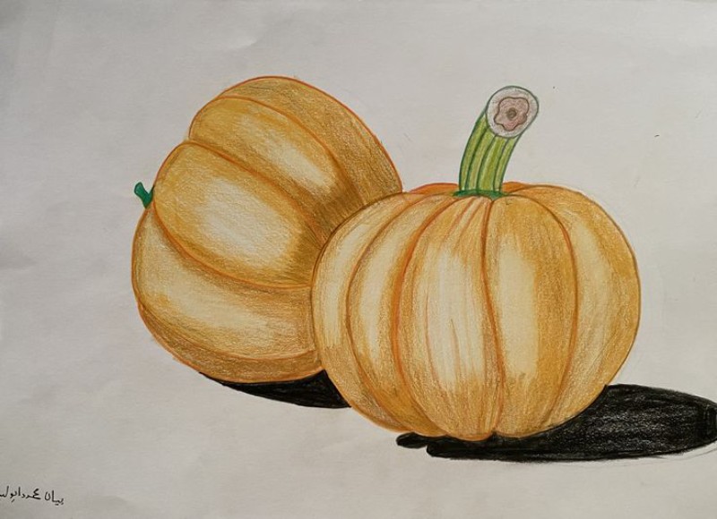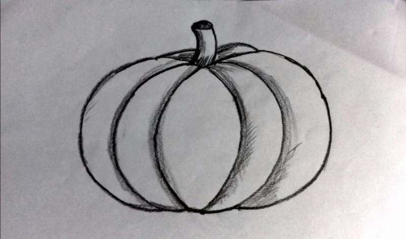 Для дітей шкільного віку цікавою буде спроба зробити реалістичний гарбуз малюнок олівцем. Такий формат дозволяє тренувати точність, спостережливість та роботу зі світлотінню.