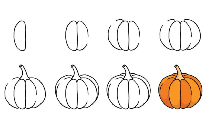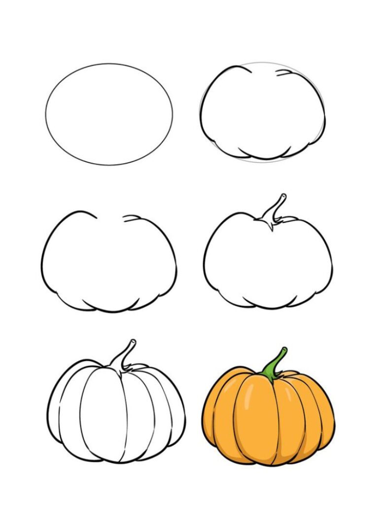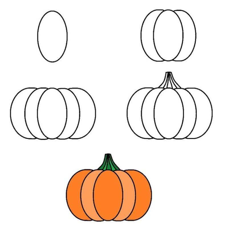 Найпростіший спосіб зобразити гарбуз полягає в поетапному додаванні форм і деталей. Це дозволяє дитині крок за кроком досягати бажаного результату, орієнтуючись на логіку форми.