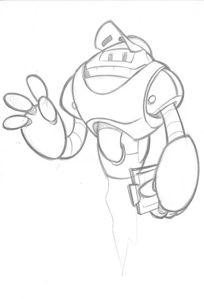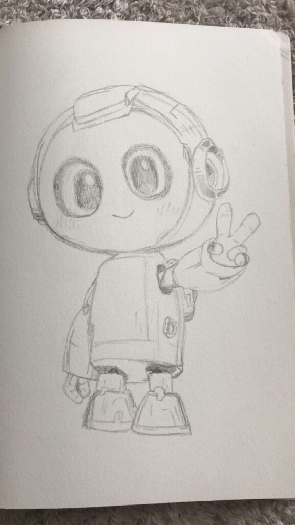 Олівцеві малюнки також є чудовим варіантом для створення тіней або об’єму. Навіть простий робот з кількох фігур може виглядати цікаво завдяки легким штрихуванням та лініям.