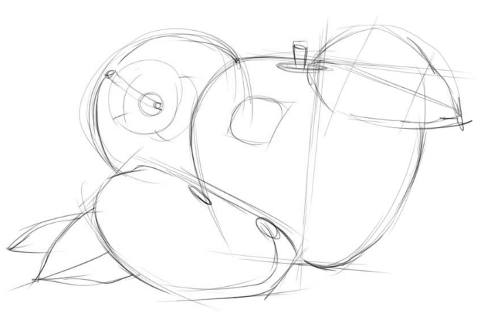 - Додайте невелику криву лінію в нижній частині яблука, що буде позначати низ плоду.