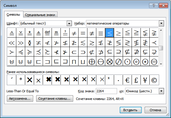≥абоgreater than or equal to. - Виберіть символ із переліку, щоб вставити його.
