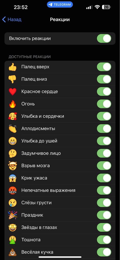 Все! Тут ви можете налаштувати, які саме реакції будуть відображатись під публікаціями.