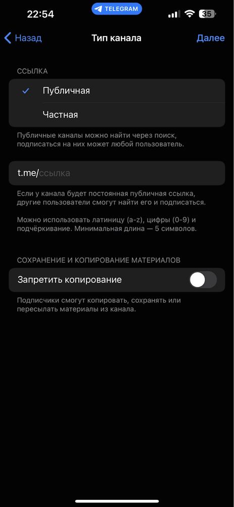 1. Обираєте тип каналу. Для вас постає 2 варіанти: «публічній» (всі можуть знайти канал через пошуковик і підписатись) і «приватний» (підписатись користувачі можуть лише за посиланням).