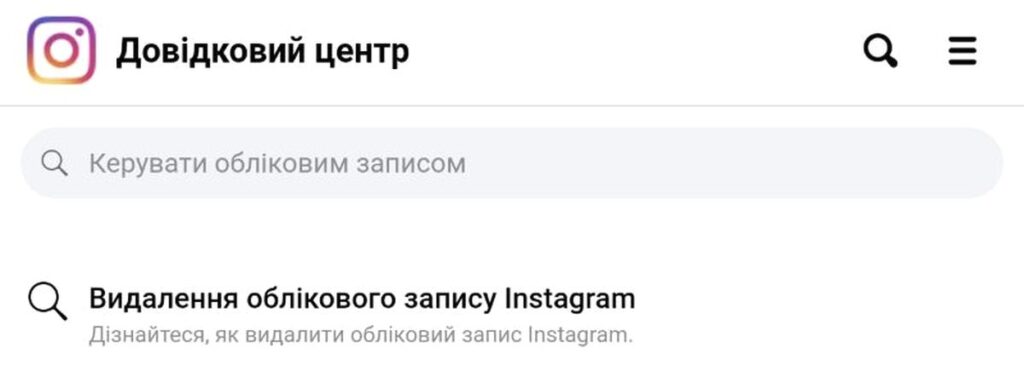 Крок 4: У пошуку введіть «Видалення облікового запису Instagram»