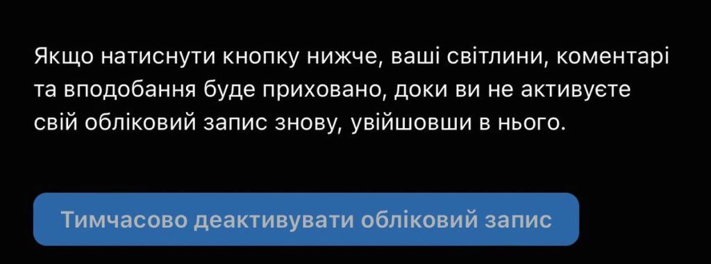 Зауважте, що не можна деактивувати сторінку в Інстаграм частіше, ніж раз на тиждень.