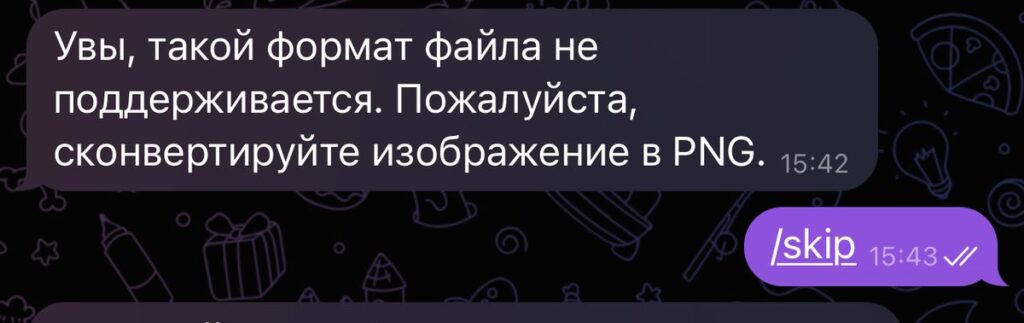 Перед тим, як ви підготуєте фото до опублікування, перевірте спочатку одне фото і залий одразу до чат-бота, адже часто буває, що формат та розмір не підходять. Коли переконаєтесь, що все підходить, можете переформатувати картинки і далі.